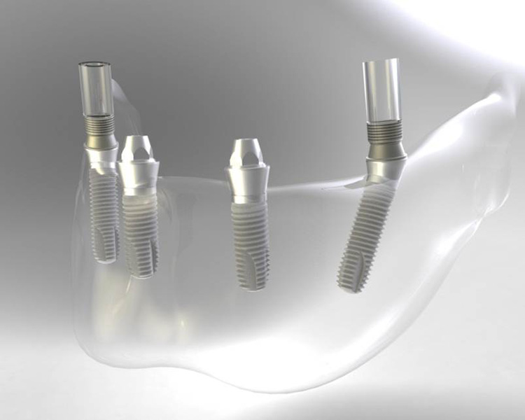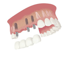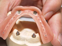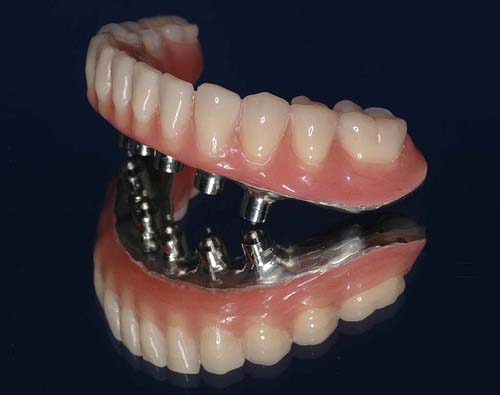 S pomocí zubních implantátů můžeme díky různým kotevním systémům (třmeny, kulové hlavy, Locatory) zajistit stabilitu a držení protézy nebo při použití většího počtu implantátů zhotovit pevné náhrady – můstky nalepené nebo našroubované na pevno na implantáty.