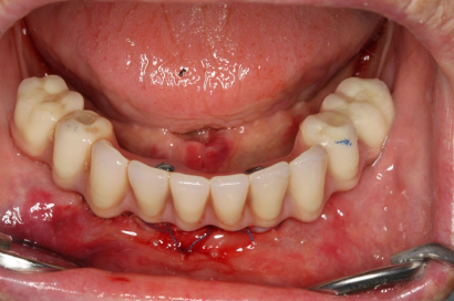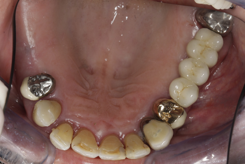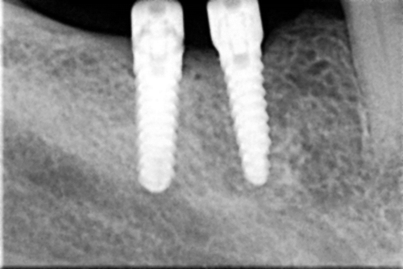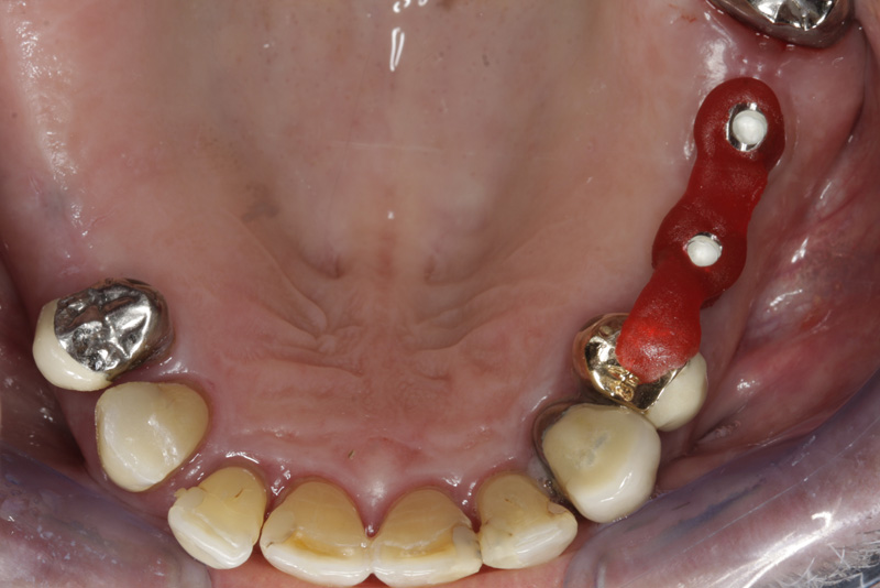 Protetické řešení může být pomocí můstku, který je kotvený na implantátech nebo pomocí jednotlivých korunek na implantátech.