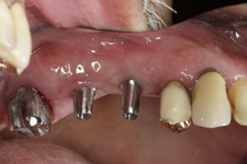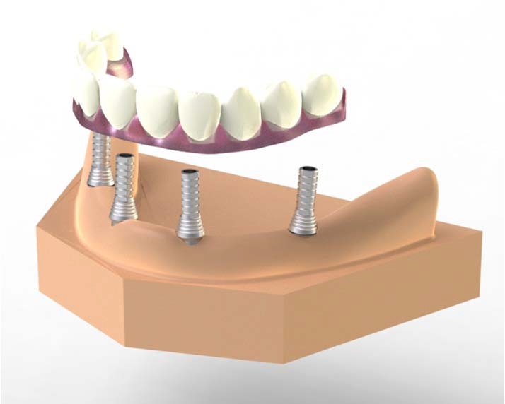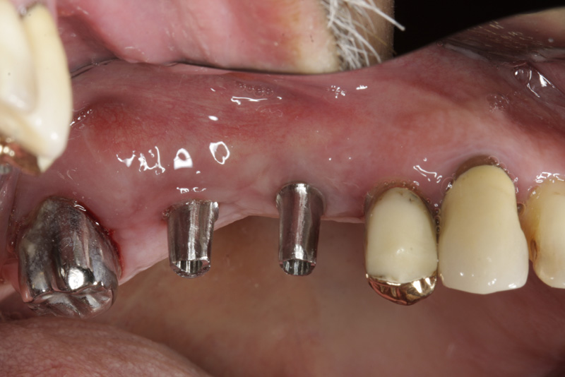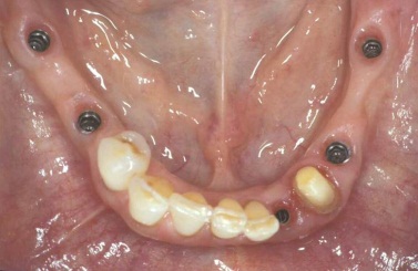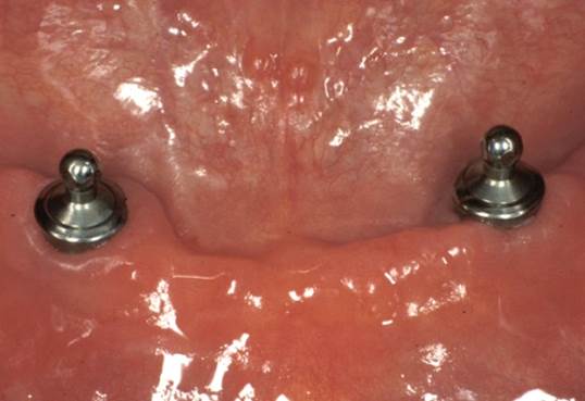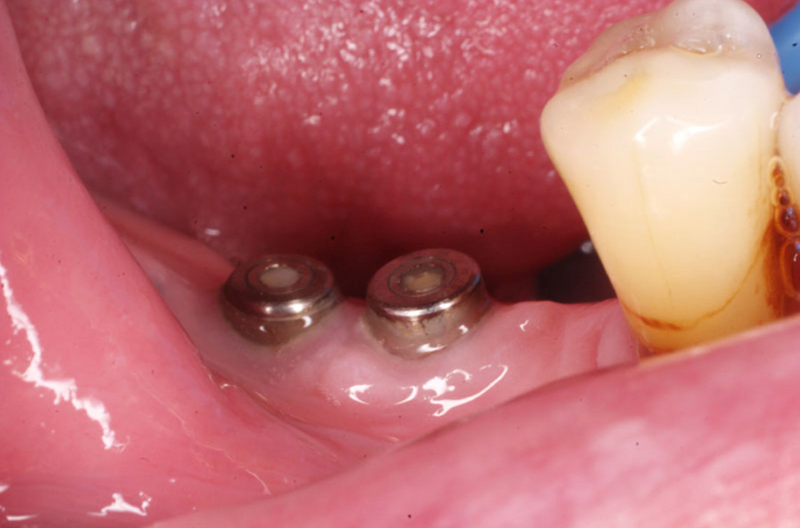 V případě chybění většího počtu zubů v postranních úsecích čelistí je možné ošetření pomocí implantátů, které nahradí ošetření pomocí snímacích náhrad kotvených na zbývajících zubech nebo patře.