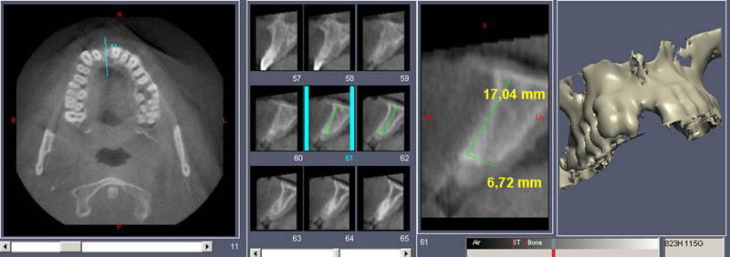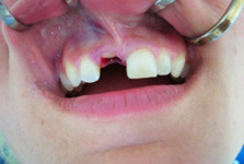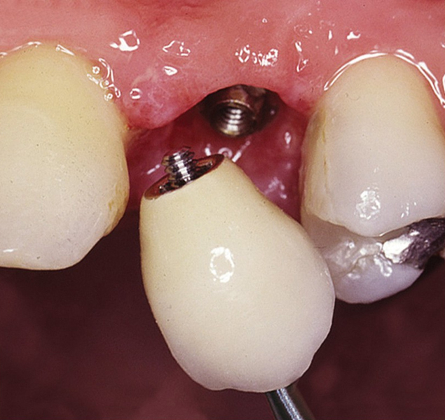 Klasickým příkladem a indikací pro použití implantátu je ztráta jednoho zubu (v tomto případě v předním – frontálním úseku) v jinak zdravém, nepoškozeném chrupu.