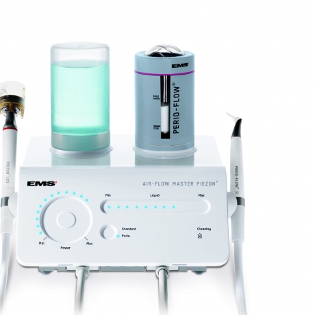 EMS Master je přizpůsobený pro supra - i subgingivální odstraňování povlaku, pigmentací a leštění zubů i v těžko přístupných místech. Přístroj má speciální násadec a zásobník prášku pro