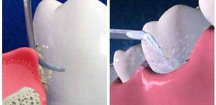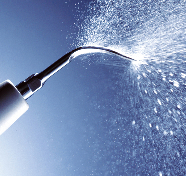 pískování a leštění zubů pomocí vysokého tlaku vody a proudu vzduchu spolu s mikročásticemi jedlé sody, hnaných proudem vzduchu a vody usazeniny z povrchových částí zubu. Hlavní výhodou
