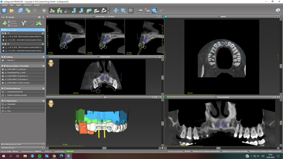 Lékař si vytvoří všechny typy zobrazení potřebných pro naplánování – tedy 2D snímky (panoramatický), příčné řezy i 3D model.